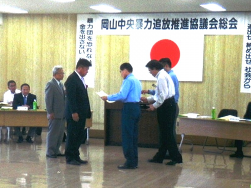 平成25年6月11日(火)に開催された岡山中央暴力追放推進協議会総会において、岡山東支部が