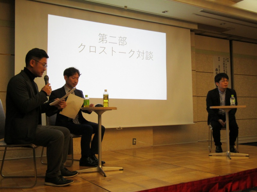 次に第二部として、森永氏と成年部の半田部長、講演会の司会を務める佐々井会員の3名によるクロストーク対談がありました。第一部から打って変わって、事前に出席者から募った質問を含めて、「日経平均株価」や「東京のマンション価格」「建築資材の高騰」「新NISA」「住宅ローン金利」など様々なジャンルの話題が上がり、ざっくばらんな対談となりました。専門家である森永氏の見解が聞けた一方で、半田部長の見識の広さに驚かされました。森永氏のお話は要点がまとまっており分かりやすく、あっという間に定刻となり質疑応答も途中で終了となりましたが、時間が許せば景気や海外経済の話をもう少し聞きたかったと感じました。